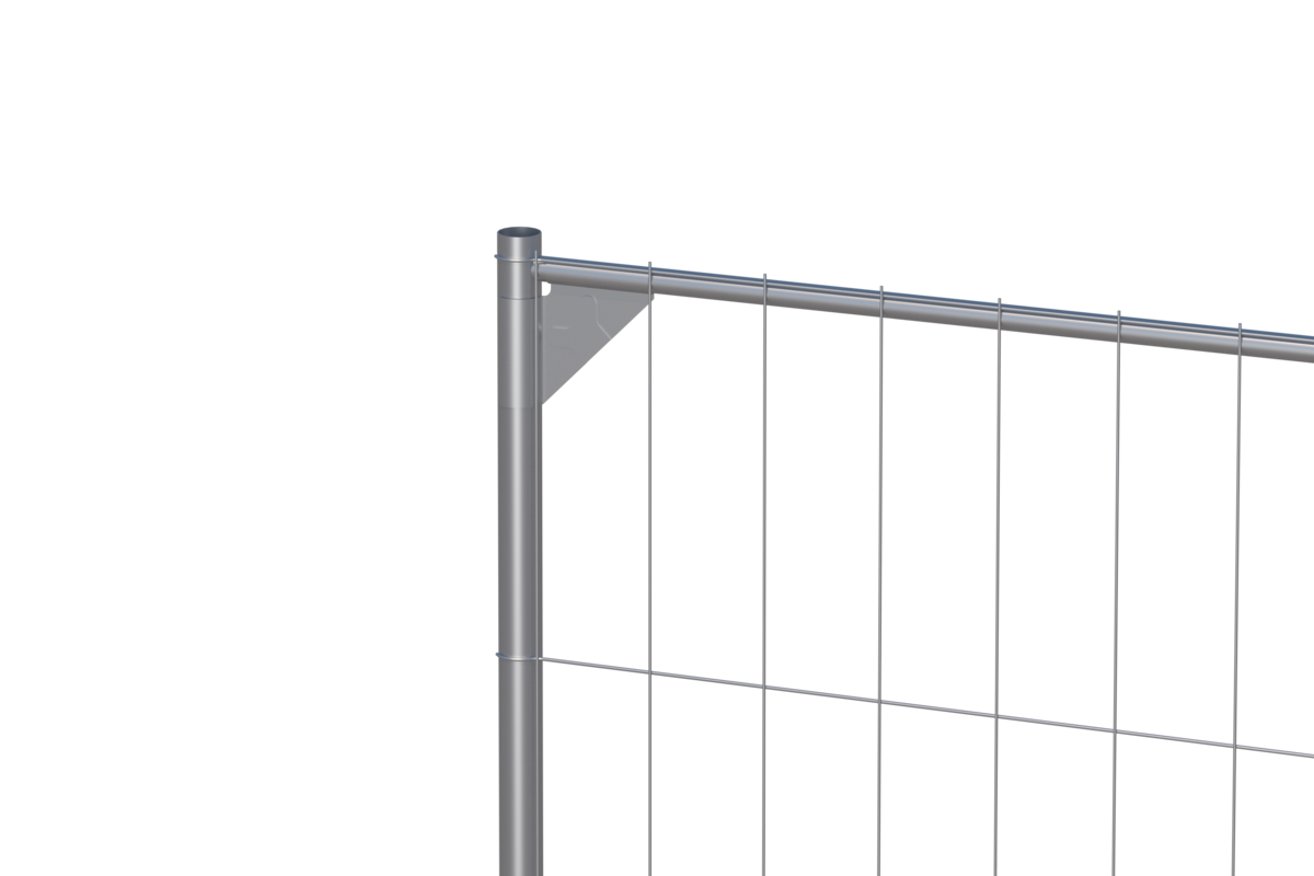 Ъгловите скоби (corner brackets), както се използват при моделите Mobile Fence M450 с усилени ъгли, подсилват свързващите точки между панелите при ъгли, което прави оградата: